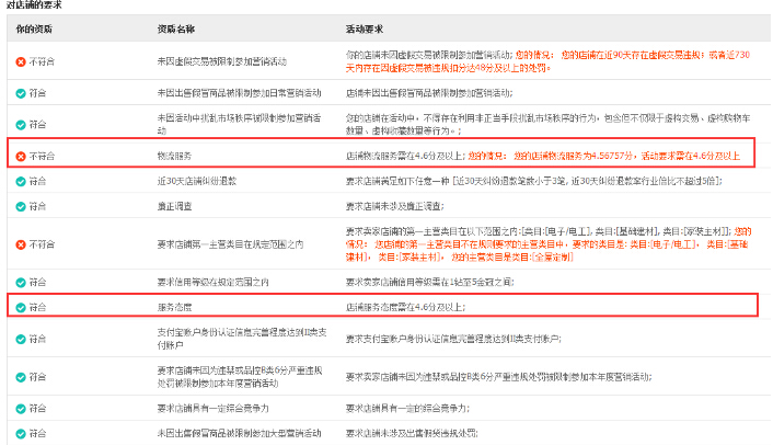DSR低于一定程度,你会报不了活动,下半年的活动是非常多,质量也非常高的,大家都知道,淘宝的大旺季是在下半年,如果一个活动都报不了,基本上,你的店铺就会很容易被同行迎头赶上,所以不要觉得11月离8月还很远,一定要尽早开始排查问题,尽快解决。