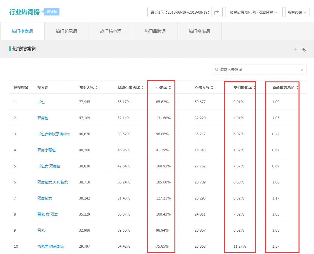 不同关键词在宝贝计划中的数据表现是不一样的,我们调整的方式主要是关键词提价、降价、精准、广泛、删除和添加,但是不同的是调整幅度和频率,和调整的组合方式。在关键词带动数据表现提升中我们重点是提升关键词数据表现好数据表现稳定的提升点击展现和排名,对于数据表现波动较大降低价格或者是开精准的形式降低影响控制关键词,对于周期内只有点击没有转化关键词宣策删除,并且添加新的潜力关键词。